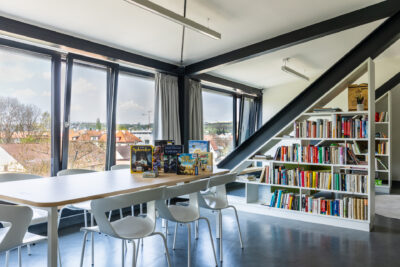 Pobočka knihovny v H55 nabízí svým návštěvníkům moderní, světlý prostor a v něm místo pro aktivní trávení volného času i pohodlí pro posezení nad knihou. V plánu jsou akce pro školy a školky, tvůrčí dílny, klub seniorů nebo hraní deskových her.