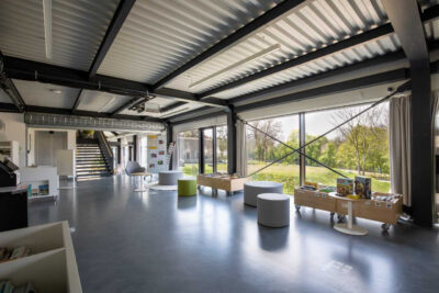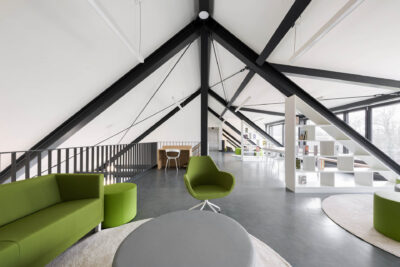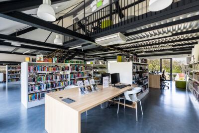 V prvním patře čtenáři najdou fond pro děti i dospělé nabízející beletrii, naučnou literaturu a deskové hry. Ve druhém patře je odpočinková zóna a stůl pro komunitní setkání. Součástí vybavení je přístup na internet a WiFi zdarma.