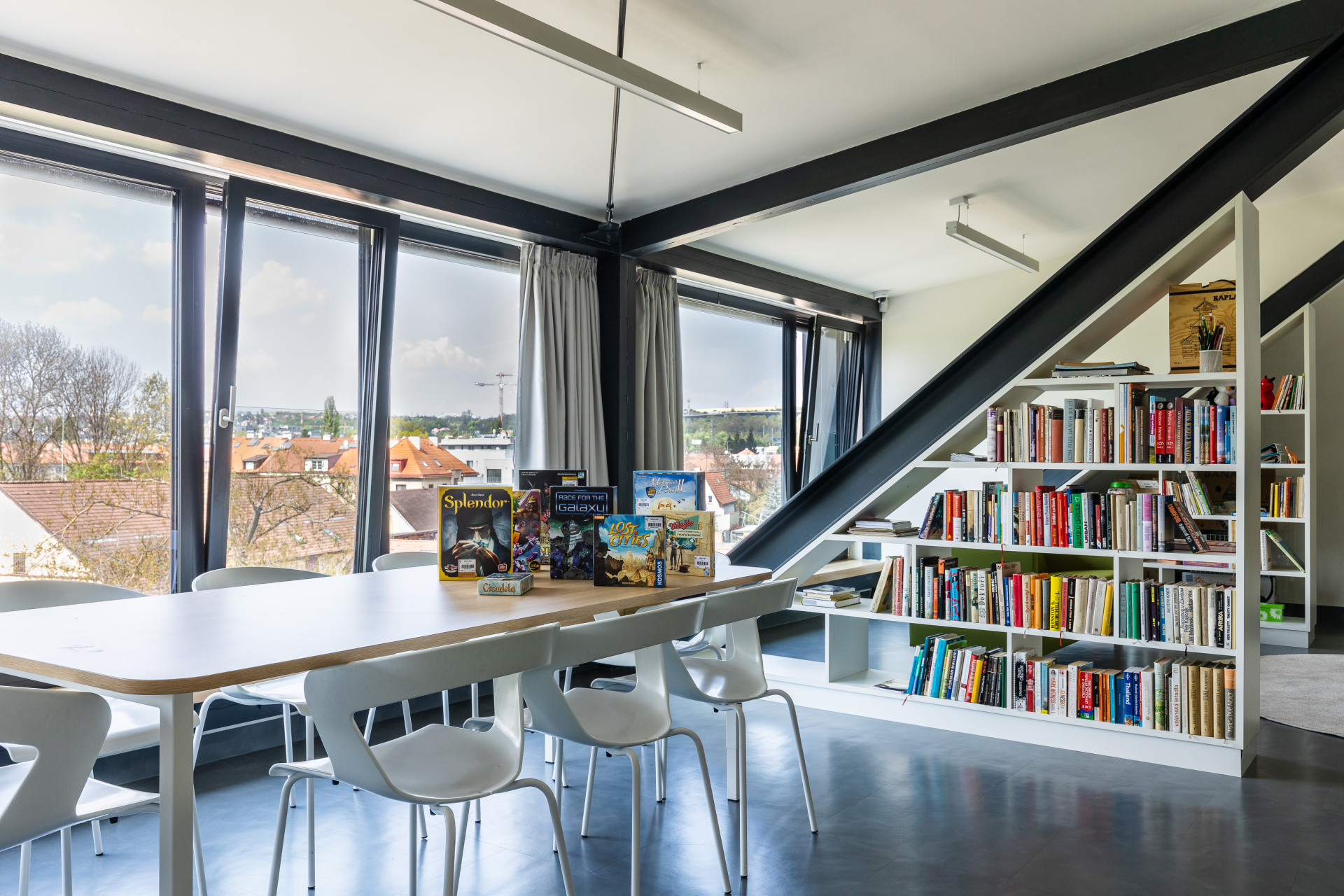 V prvním patře čtenáři najdou fond pro děti i dospělé nabízející beletrii, naučnou literaturu a deskové hry. Ve druhém patře je odpočinková zóna a stůl pro komunitní setkání. Součástí vybavení je přístup na internet a WiFi zdarma.